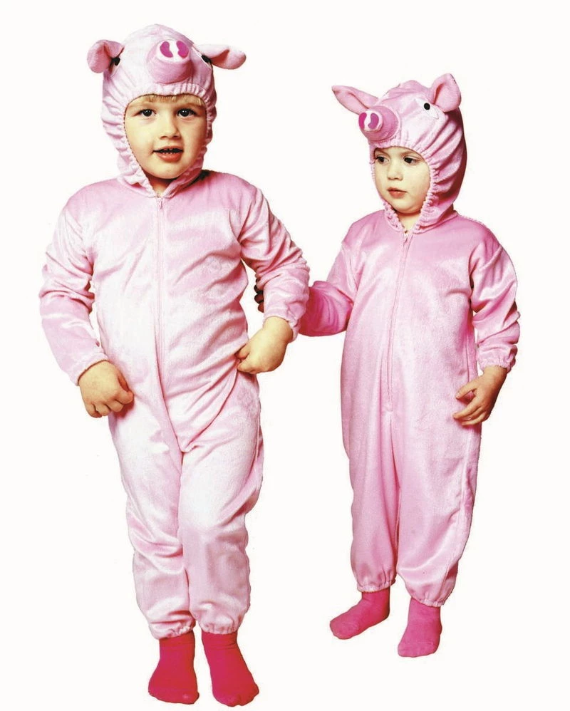 Unisex Pig Costume Includes Pink Long Sleeve Jumpsuit with Zipper Front Closure and Attached Hood with Pig Face.