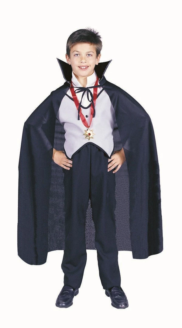 Child 36″ Cape. Includes Long Black Cape with Formed Collar Only. *Costume not included. Nylon Taffeta Fabric.