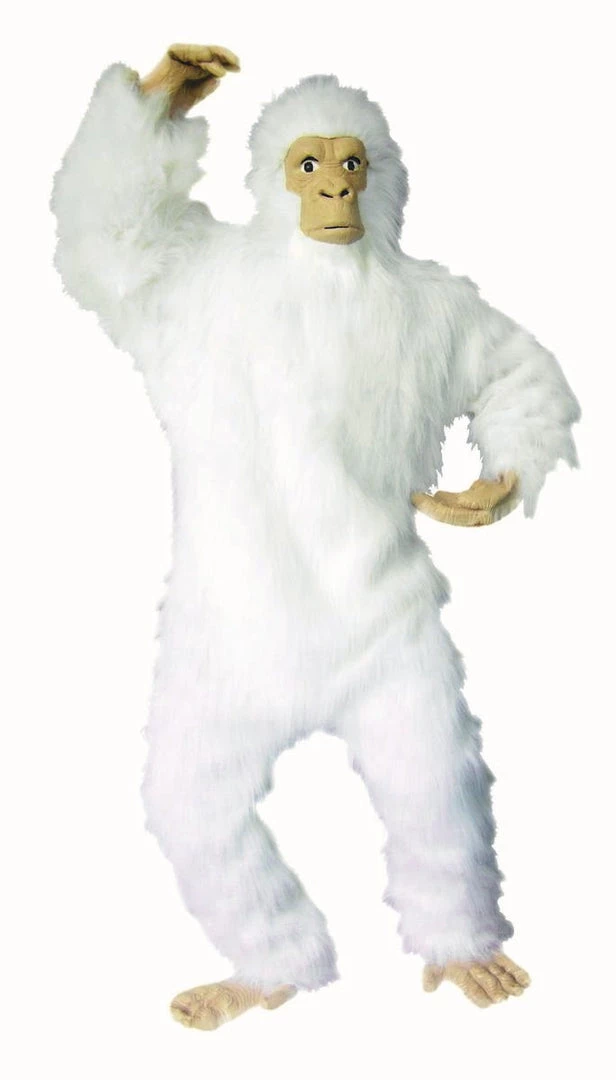 White Gorilla Mascot Costume Includes Plush White Faux Fur Body, Latex Mask, Latex Mitts and Latex Feet.Â