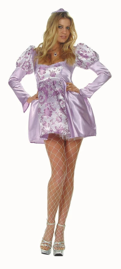 Costume Includes Sequin Trimmed Dress with Invisible Zipper and Clear Shoulder Straps, Attached Petticoat Skirt and Hat.