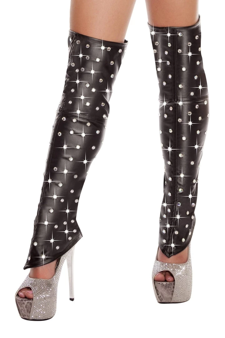 Leatherette Leg Warmers with Rhinestone Details